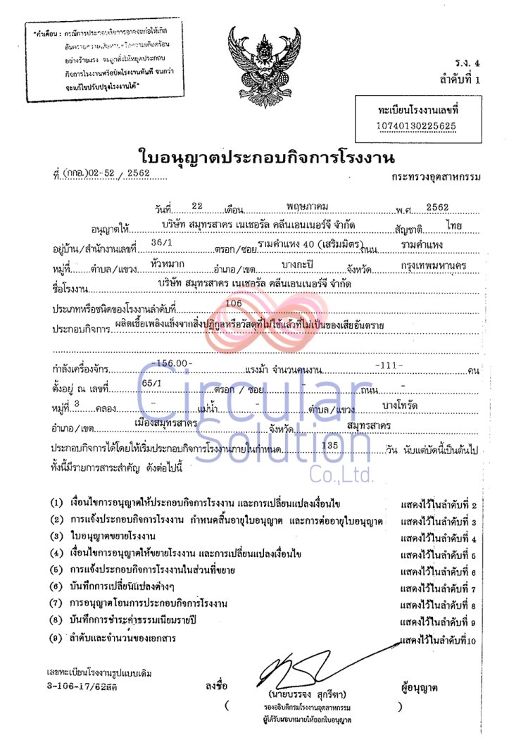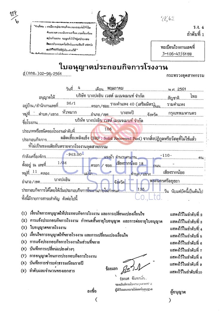 เริ่มดำเนินการตั้งแต่ปี 2560 โดยมีกำลังการผลิตรวม สูงสุด 400 ตันต่อวัน